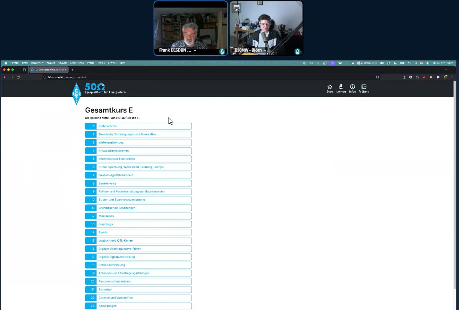 55 Anmeldungen sind in den vergangen Wochen und Tagen eingegangen, von denen am ersten Abend bereits 50 Teilnehmende online waren. Der DARC-Konferenzserver hat dem hohen Andrang gut Stand gehalten. Neben der allgemeinen Vorstellung ging es gleich in die erste Lektion. Grundlage des Online-Angebots ist der DARC-Lehrgang auf 50ohm.de. An ca. 20 bis 22 Abenden werden nun die restlichen Inhalte der beiden Klassen präsentiert. Am Ende steht eine simulierte Probeprüfung. Den Verlauf und die Inhalte der einzelnen Online-Einheiten können die Teilnehmenden auf der Lehrgangsseite jeweils nachlesen. Der Lehrgang wird erneut vom eingespielten Team aus Björn DJ8MW und Frank DL6DBN abgehalten.